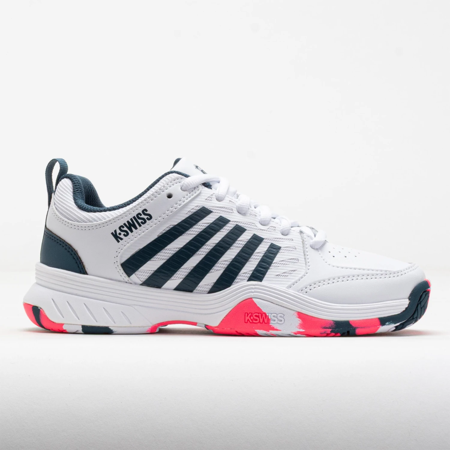 Built on the best-selling Express platform, the K-Swiss Court Express 2 Junior is perfect for young tennis players. Its breathable leather upper combines with an EVA Midsole for maximum comfort during the match. Enjoy long-lasting traction from the durable rubber outsole. Light and responsive, the K-Swiss Court Express 2 Junior elevates your game!