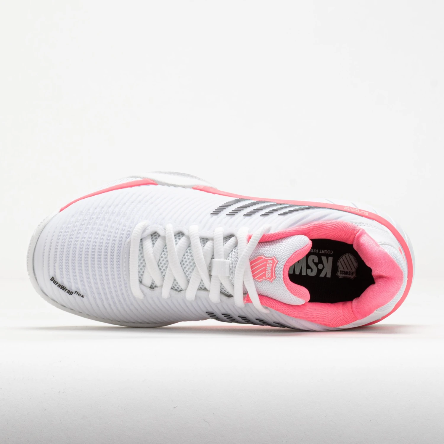 Stay light on your feet in the K-Swiss Hypercourt Express 2! Inspired by running shoes, these tennis kicks unleash the speed to reach any shot. Enjoy a light and flexible fit in the DuraWrap upper. The Surgelite midsole provides a soft and responsive ride. Quick, nimble and comfortable, the K-Swiss Hypercourt Express 2 covers the court!