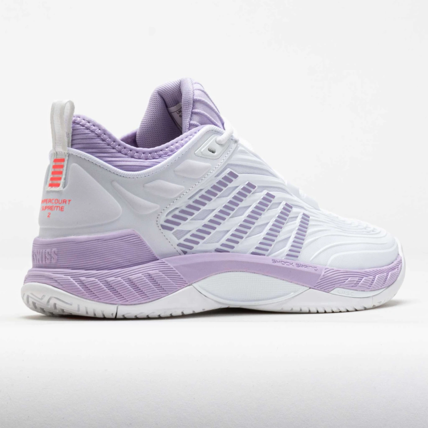 Reach your potential in the K-Swiss Hypercourt Supreme 2! This tennis shoe keeps you comfortable with a secure fit, extra durability, and improved support. Stay protected while sprinting around the court in the Durawrap X upper. The dual-density midsole features a Surgelite outer foam and a Shock Spring inner foam for quick reactions. Enjoy traction and durability on any surface under the DragGuard 7.0 rubber outsole. Soft, light and responsive, the K-Swiss Hypercourt Supreme 2 brings you to the ball faster!