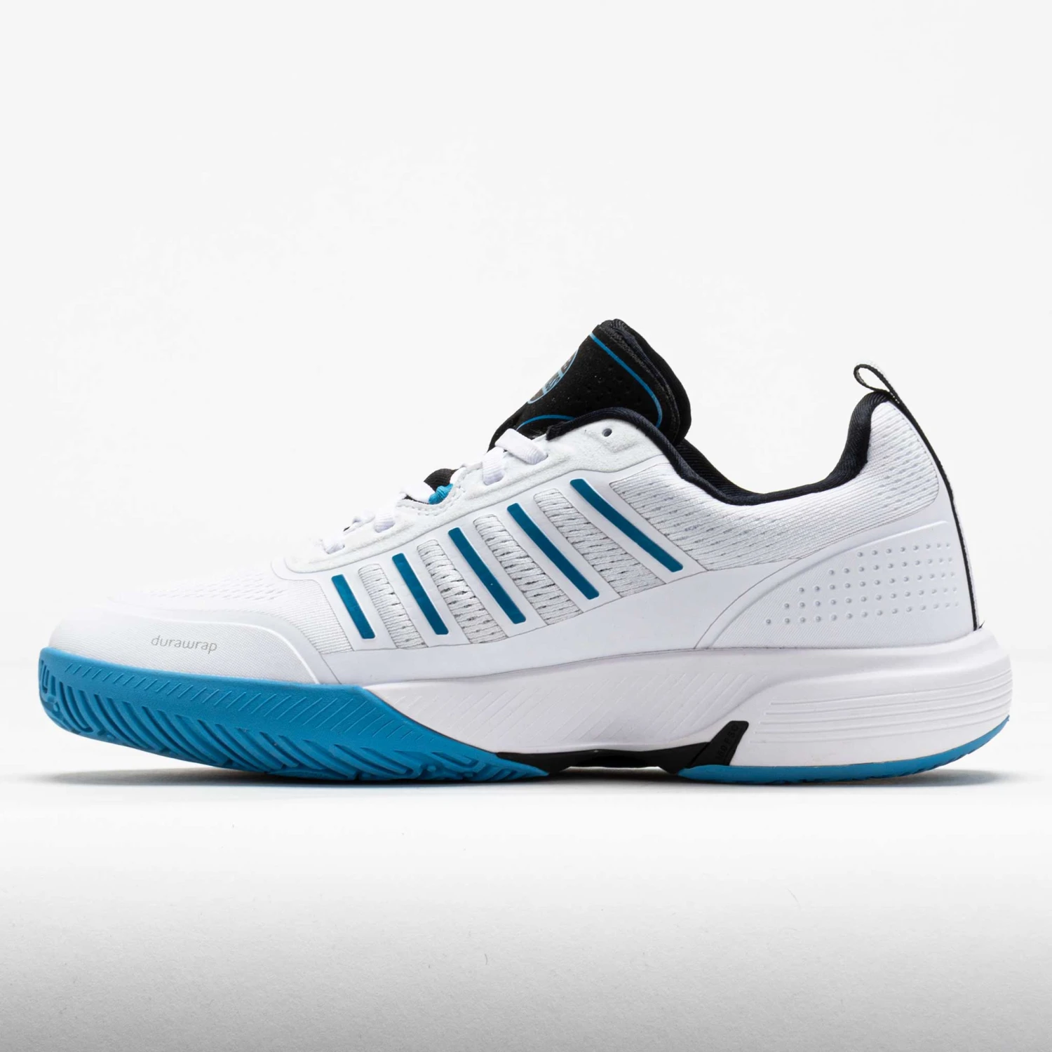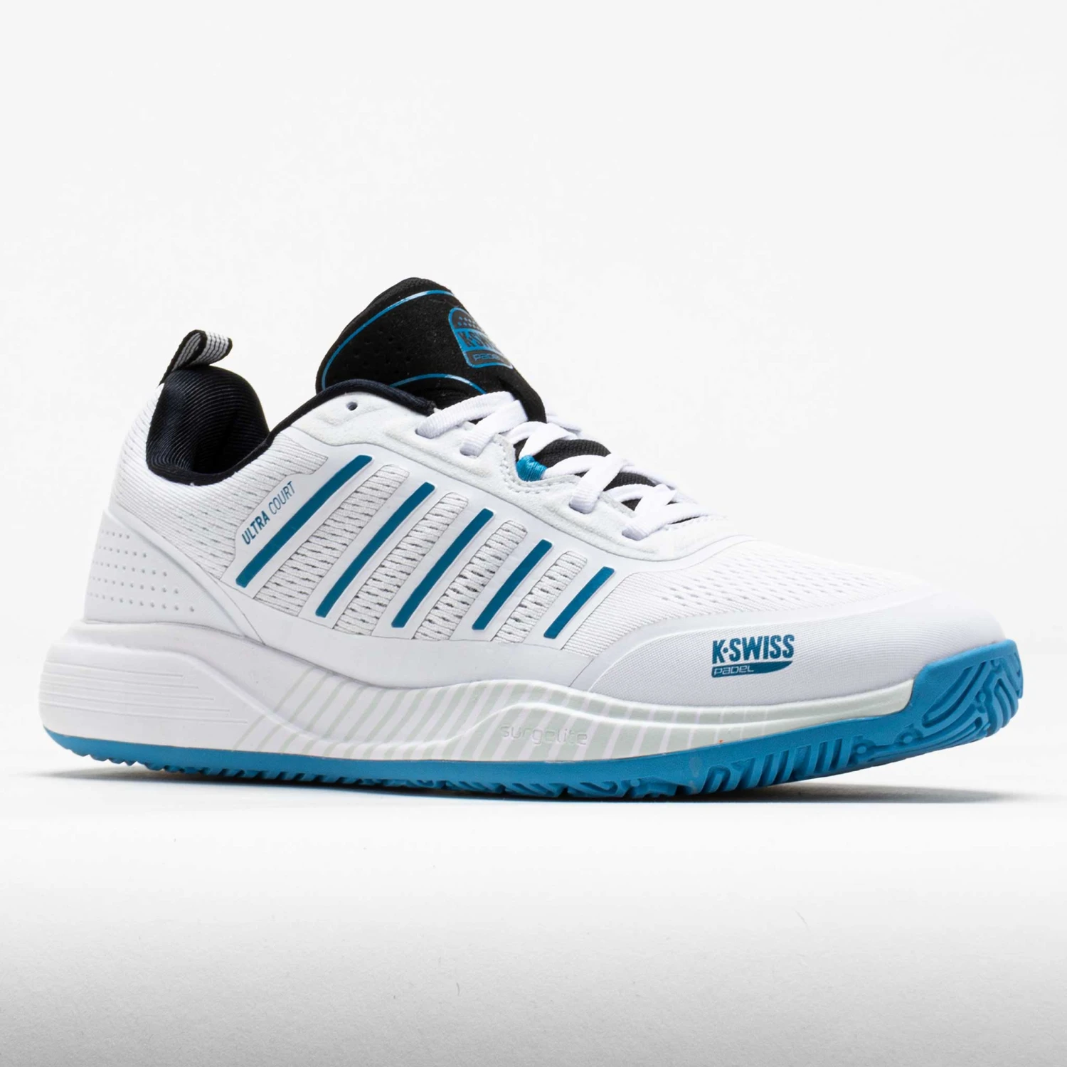 Step into lightweight comfort with the K-Swiss Ultra Court Padel! This padel shoe sits lower to the court for a connected and cushioned ride. Stay supported during lateral movements in the breathable mesh upper. DuraWrap material on the forefoot offers a secure fit and toe drag protection. Navigate the court quickly and confidently under the Padel-specific outsole. Engineered to optimize your performance, the K-Swiss Ultra Court Padel elevates your game!