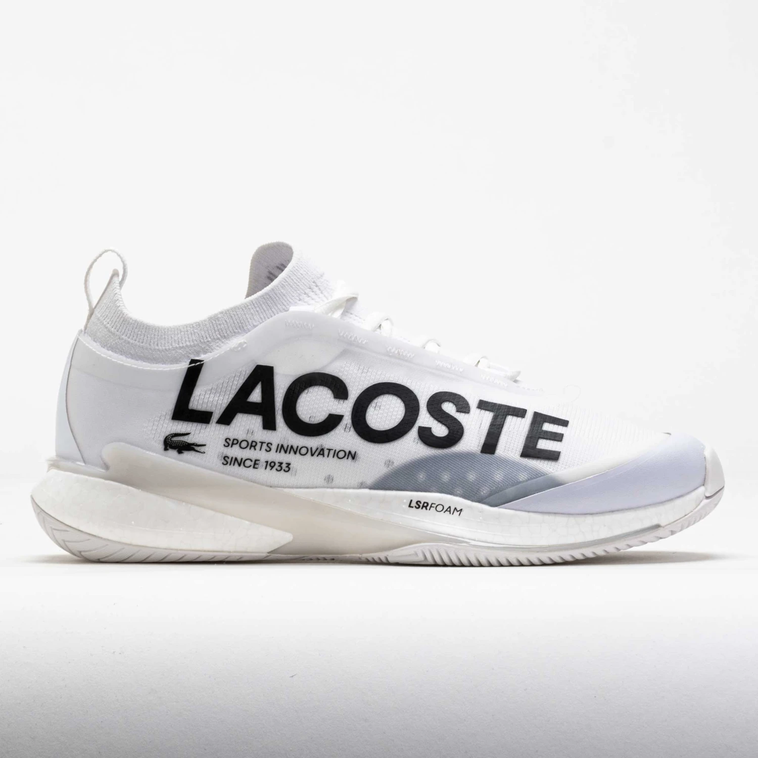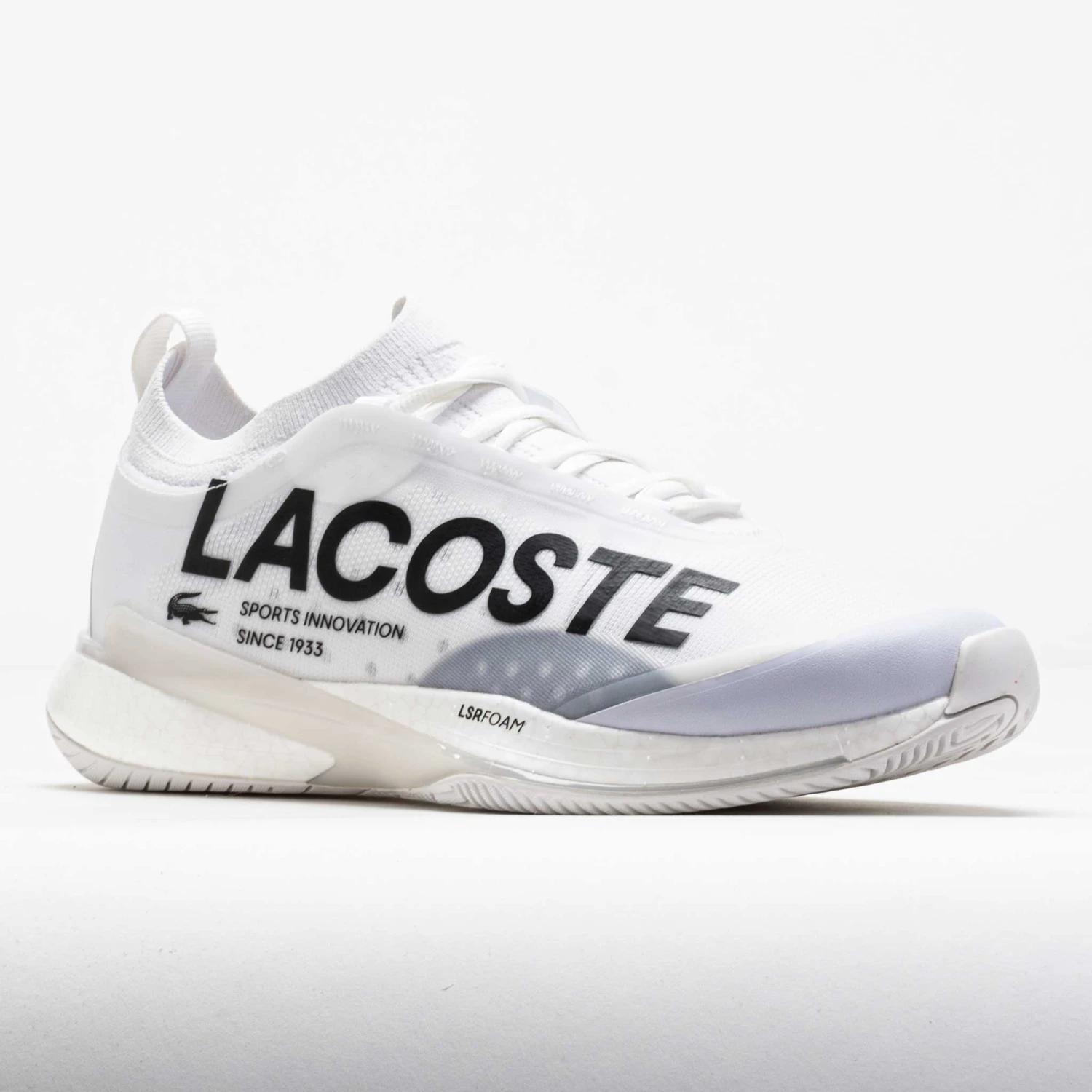 Style and technicality combine in the Lacoste AG-LT 25 Lite! This speedy tennis shoe is a lightweight weapon for fleet-footed players. Slip into a sock-like jacquard upper to stay cool and protected on the court. Feel explosive with every stride on the LSR Foam midsole. Find your footing on the court with the Linegrip rubber outsole. Sleek and responsive, the Lacoste AG-LT 25 Lite unlocks your quickness on the court!