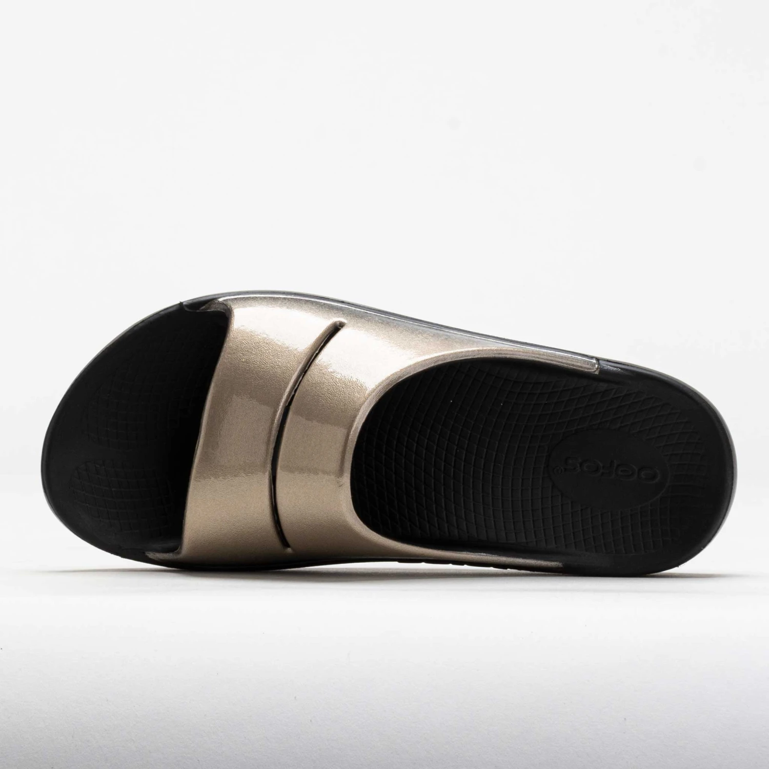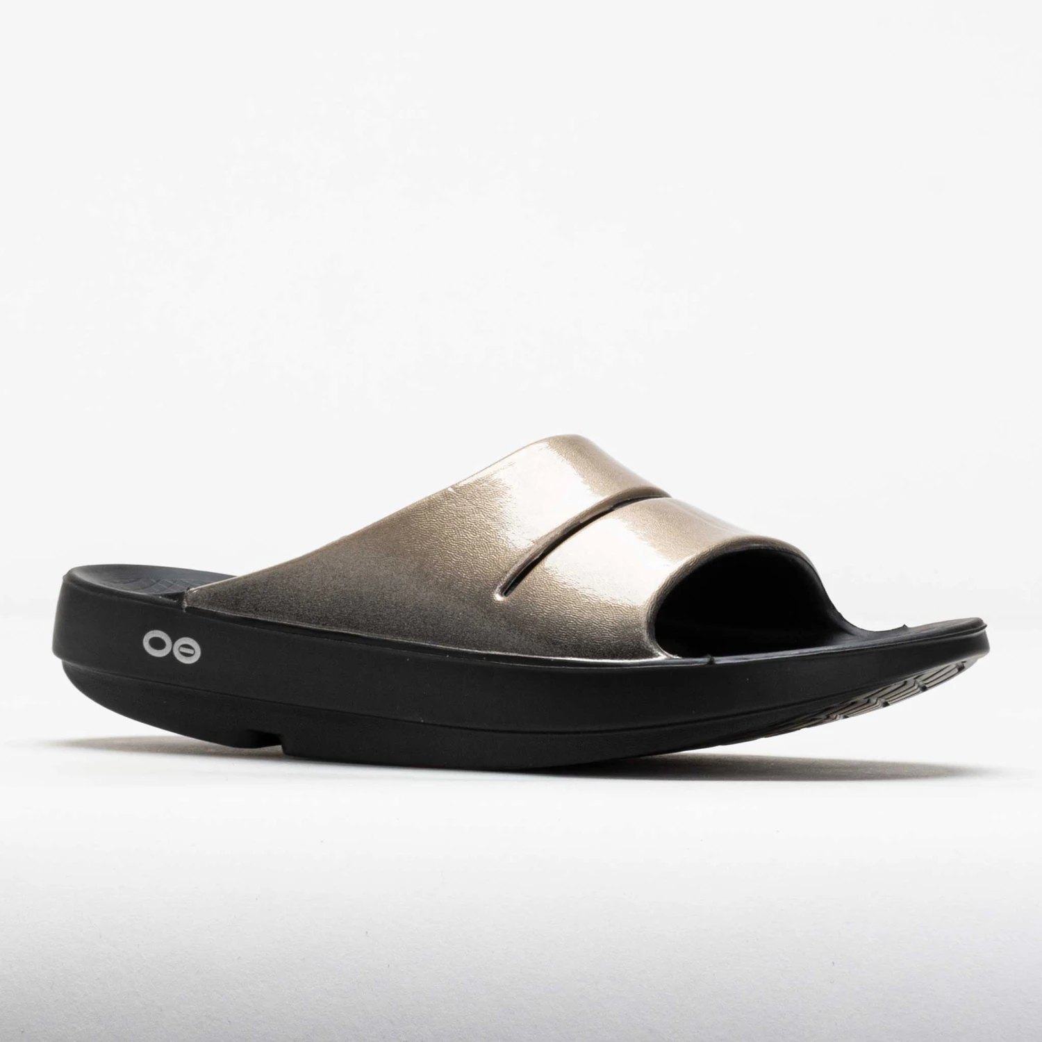 Treat your hard-working feet with OOFOS Ooahh Luxe sandals. Featuring OOfoamâ„¢ technology, these slide-on sandals absorb 37% more impact than your regular footwear. This special technology reduces stress on your feet and facilitates recovery after physical activities. An agile OOfoamâ„¢ strap provides additional support, while vibrant treatments add style to your stride.