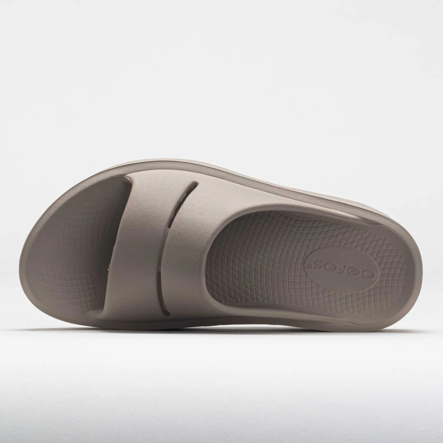 Find relief in style with the OOFOS OOmega OOahh sandals! These recovery slides offer a versatile, modern twist on the original OOlala sandals. Featuring the same OOfoamâ„¢ technology and patented footbed, the OOmega includes a MEGA midsole that adds 15mm of shock-absorbing comfort. Trendy and unique, the OOFOS OOmega OOahh takes a step forward in fashion and recovery!