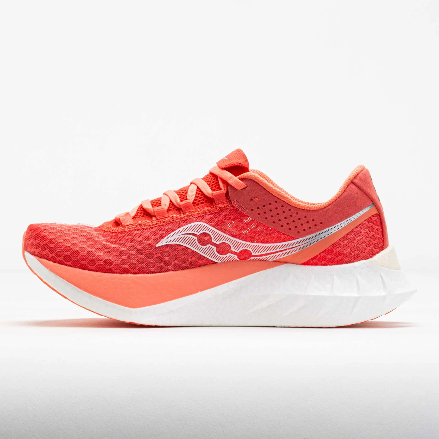 Find your race day ride in the Saucony Endorphin Pro 4! This neutral running shoe features responsive cushioning and a carbon fiber plate to propel every stride. PWRRUN HG and PWRRUN PB foams in the midsole and a full-length carbon plate provide smooth transitions. Enjoy effortless strides from the SPEEDROLL technology, while the heel liner and tongue system enhance comfort. Snappy and responsive, the Saucony Endorphin Pro 4 fuels your race-day drive!