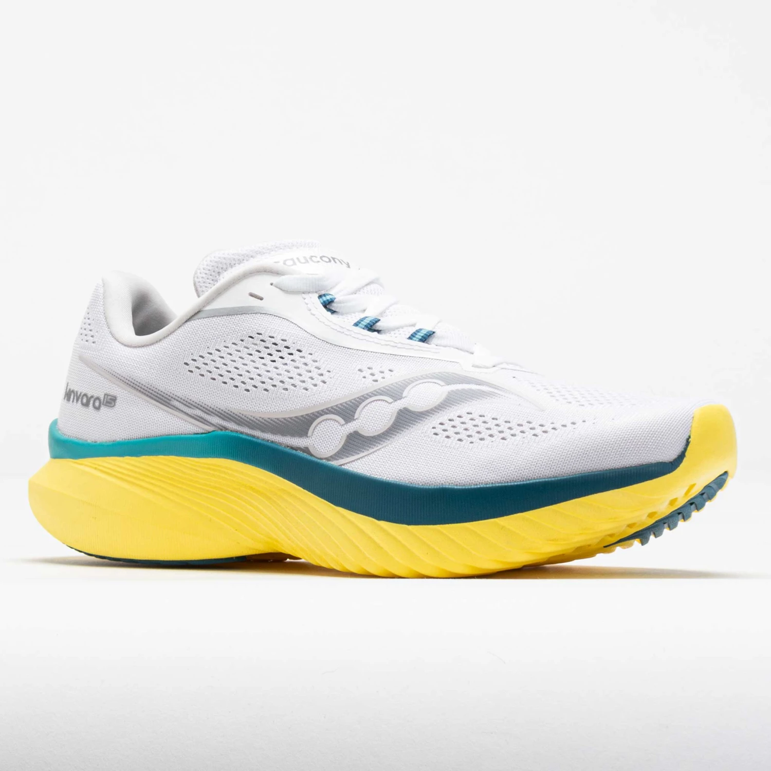 Featherweight and flexible, the Saucony Kinvara 15 unlocks your true running power! This fan-favorite running shoe is perfect for neutral runners who want a no-nonsense, low-profile design. Slip into a seamless engineered mesh upper and enjoy distraction-free comfort while you pursue your goals. The light and responsive PWRRUN midsole features a 2mm lower stack height for more ground contact and a natural ride. Fast, light and flexible, the Saucony Kinvara propels you to personal bests!