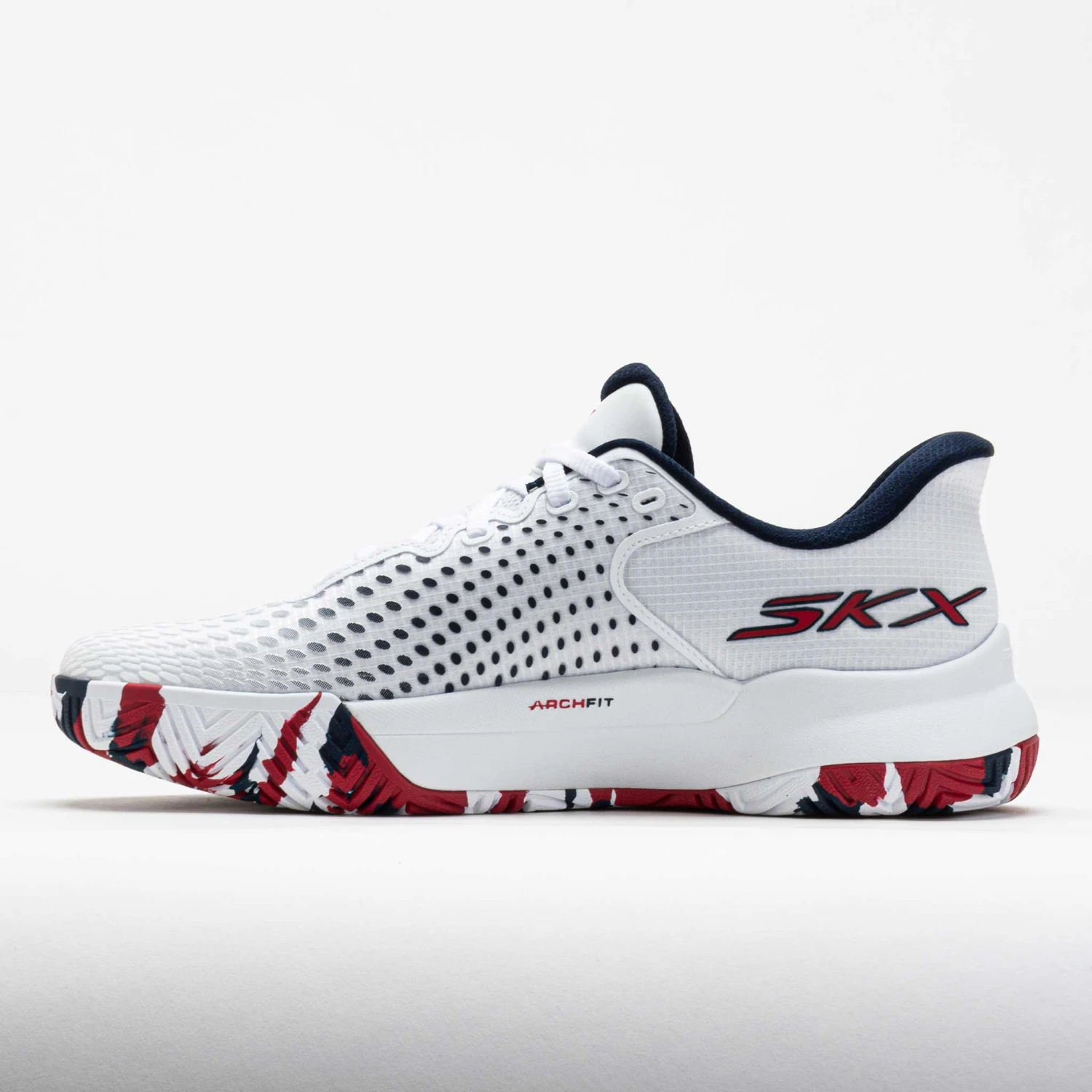 Upper: Durable mesh upper with a 3D printed design improves protection in high-wear areas. Skechers Hands Free Slip-ins® let you slide in for an easy fit. Exclusive Heel Pillow™ holds your foot securely in place.